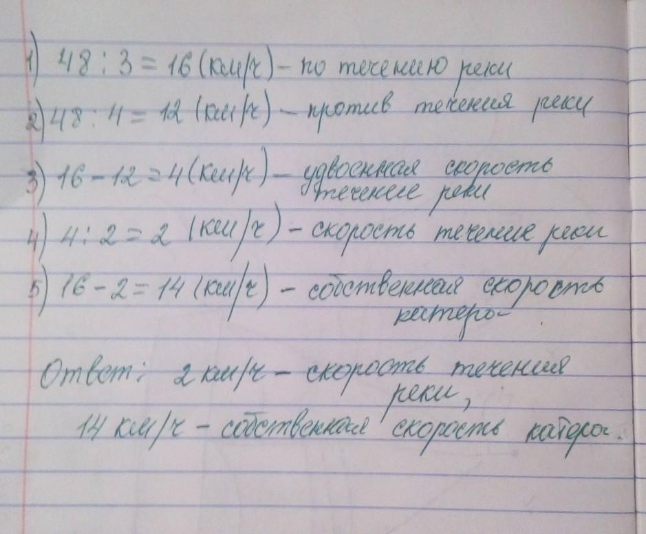 Решение задач с помощью составления систем уравнений. Урок 3. Катер проплыл по теченир реки 48 км, затратив на весь путь 3 часа, на обратный путь затратил 4 часа, проплыв это же расстояние. Найди собственную скорость катера и скорость течения реки.