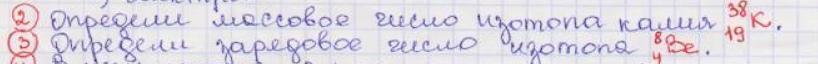 1.-Порядковый номер – это число протонов в ядре, а массовое число – это сумма протонов и нейтронов в ядре. Таким образом, в ядре самого распространенного изотопа калия 19 протонов и 39-19=20 нейтронов. Ответ: 1920
