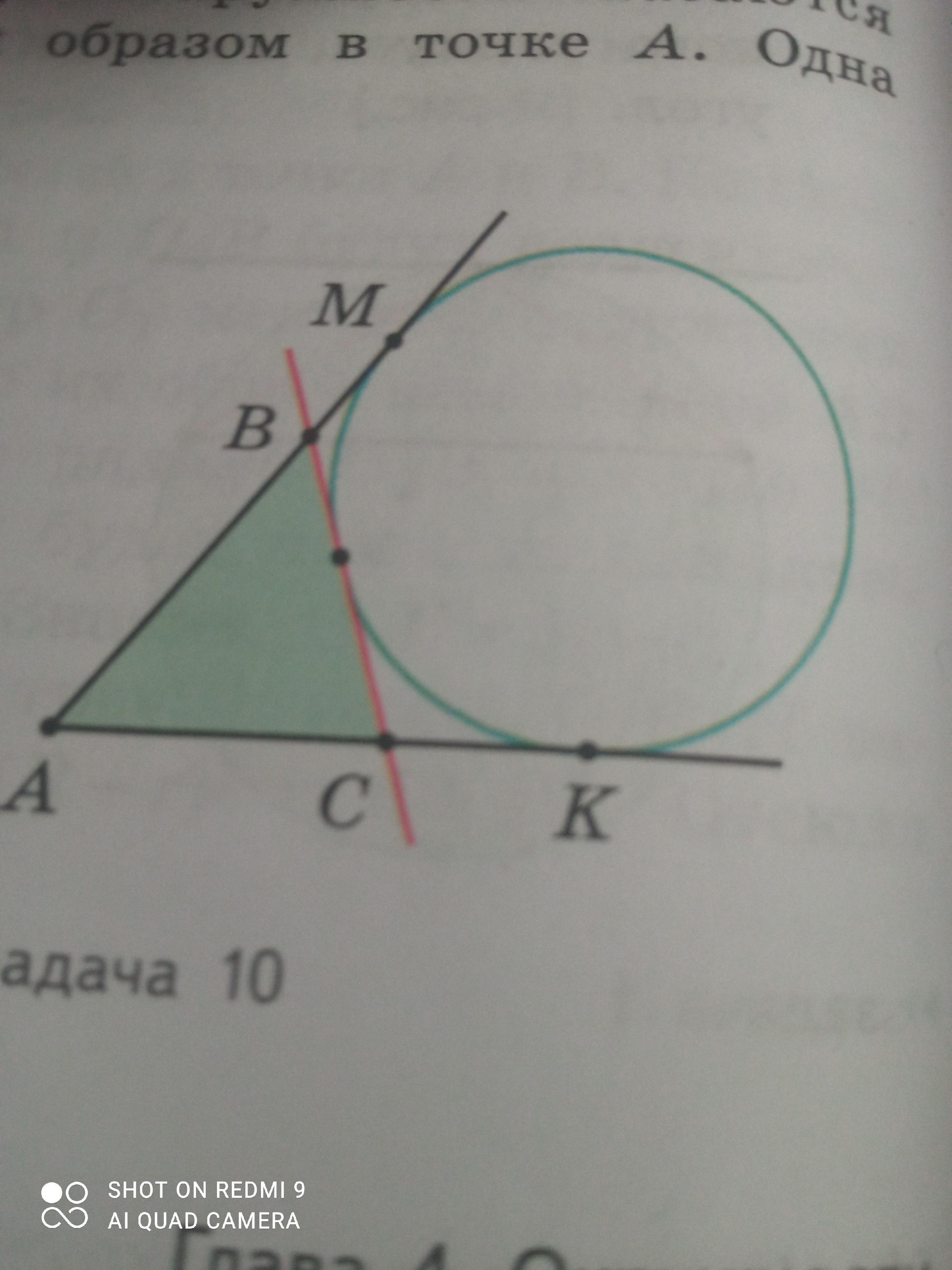 Даю 100балов.Окружность касается сторон угла с вершиной А в точках М и К.качательная к этой окружности пересекает отрезки АМ и АК в точках В и С.Докажите , что периметр треугольника АВС не зависит от выбора этой касательной