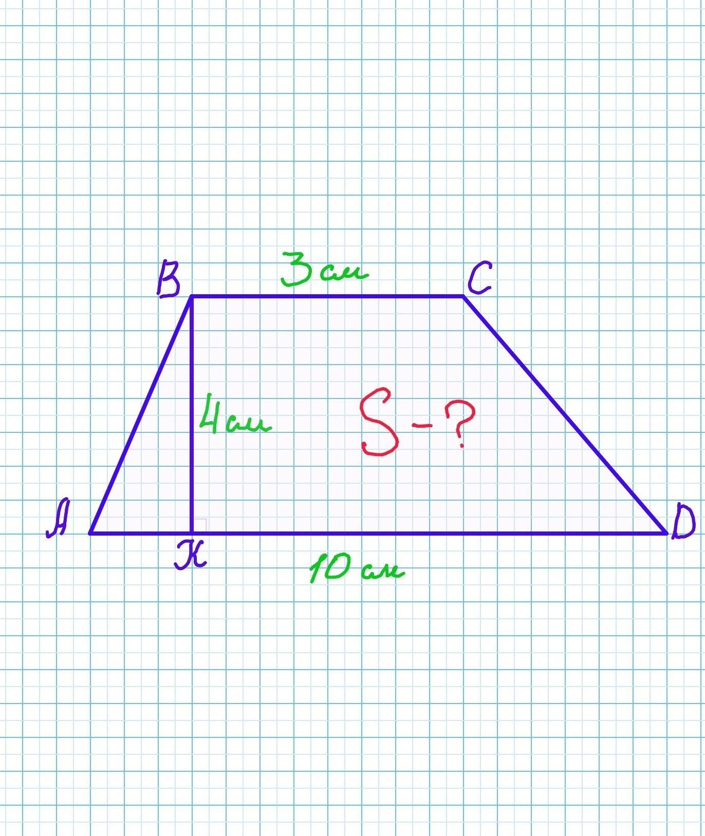 a=BC=3см, b=AD=10см, h=BK=4см.