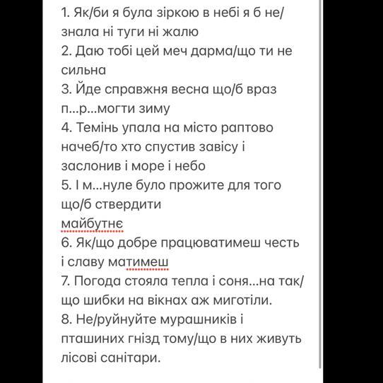 Перепиши речення в робочий зошит, уставляючи пропущені букви, розділові знаки та знімаючи риску. Підкресли сполучники.