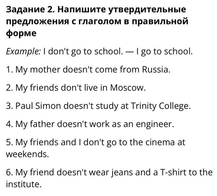 Надо просто убрать глагол don’t и doesn’t и написать предложение