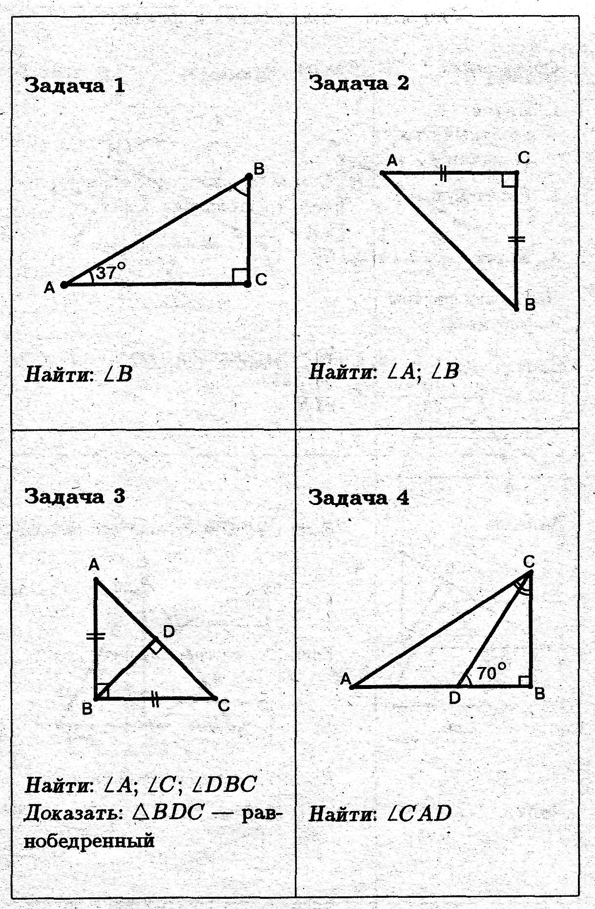 4) На рисунке 4 задан Δ АВС - прямоугольный. В нем проведена биссектриса CD, так как ∠ACD =∠BCD .