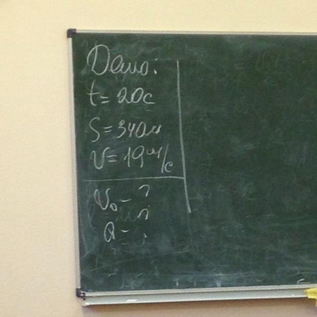 V0=2*S-V*t/t=2*340-19*20/20=15 м/с