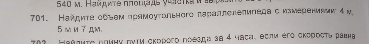 V=abc -объём прямоугольного параллелепипеда, a,b,c -три его измерения V= 4 * 5 * 0,7 = 14 м (кубических)