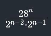 \displaystyle \dfrac{28^n}{2^{n-2}\cdot2^{n-1}}=\dfrac{28^n}{2^{n-2+n-1}}=\dfrac{28^n}{2^{2n-3}}=\dfrac{(4\cdot7)^n}{2^{2n}\cdot2^{-3}}=\dfrac{4^n\cdot7^n}{{4^n}\cdot\dfrac1{2^3}}=7^n:\dfrac1{2^3}=
