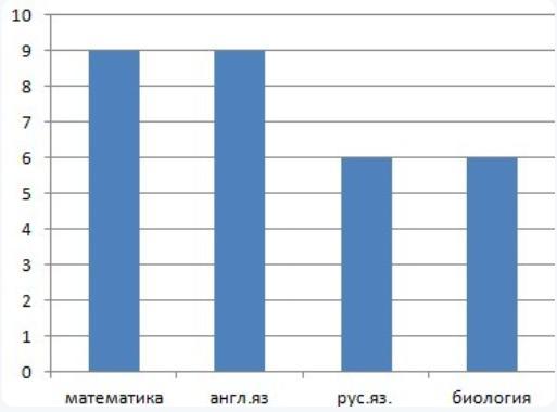 В классе 30 учеников 30% учат математику 30% английский язык 20% учат русский язык остальные биологию. Составить столбчатую диаграмму