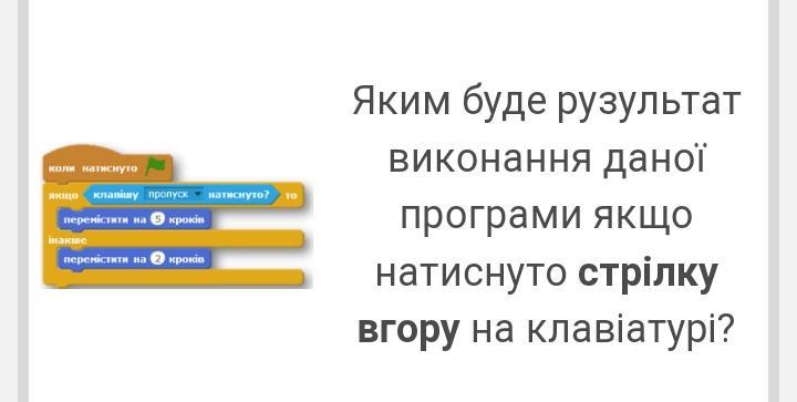 Яким буде рузультат виконання даної програми якщо натиснуто стрілку вгору на клавіатурі?