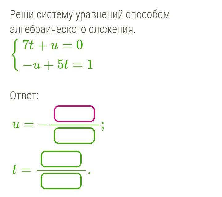 сложим уравнения и получим 12t=1 ⇒t= подставим это значение в любое исходное уравнение и получим: u=-
