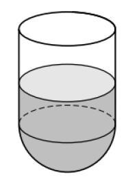 На рисунке ниже показан цилиндр с радиусом 9 см и полусферический контейнер с радиусом 9 см. Длина цилиндра 18 см. Емкость ставится вертикально так, чтобы она находилась под полусферой. Найдите высоту воды.