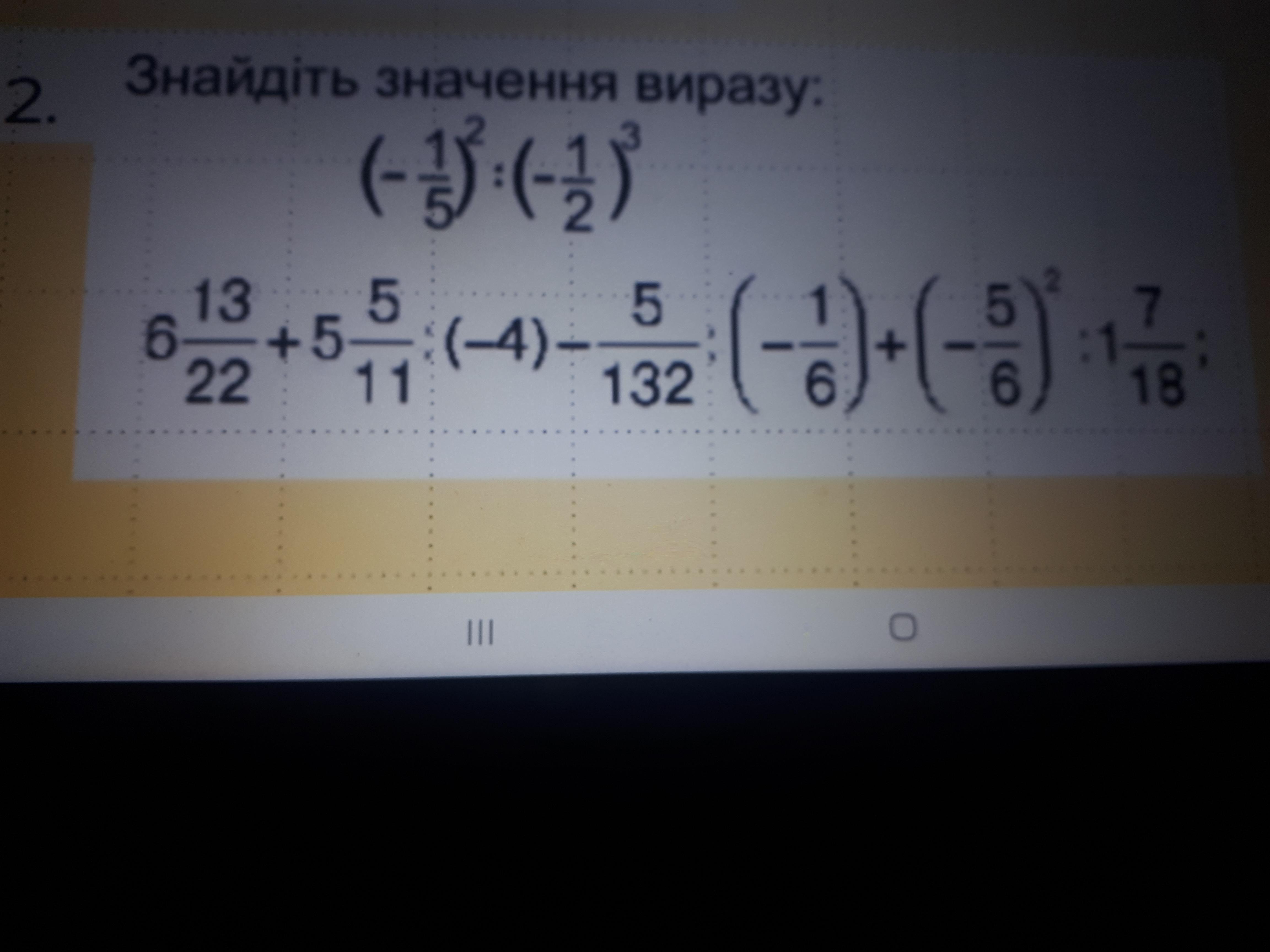 2 . a ) (- 1/5 )² : (- 1/2 )³ = 1/25 : (- 1/8 ) = - 1/25 * 8/1 = - 8/25 .