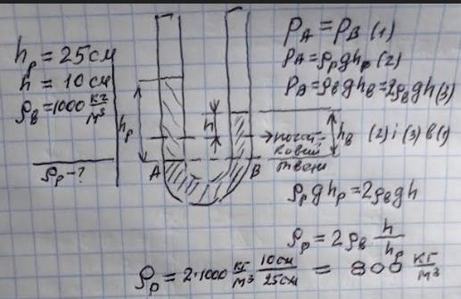 шару легкої рідини висотою 25 см рівень води у правому