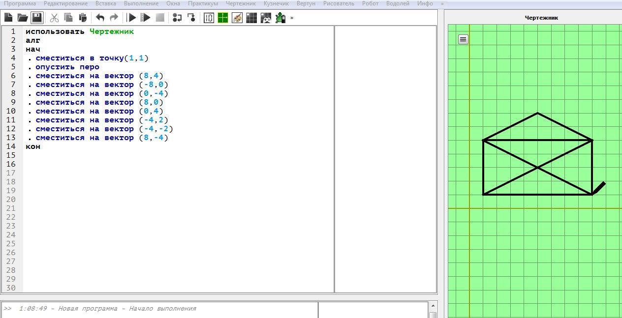 4) Так выполняем все команды по порядку (по правилам пункта 3). В результате у нас получится рисунок, который заложен в этой программе (конвертик).