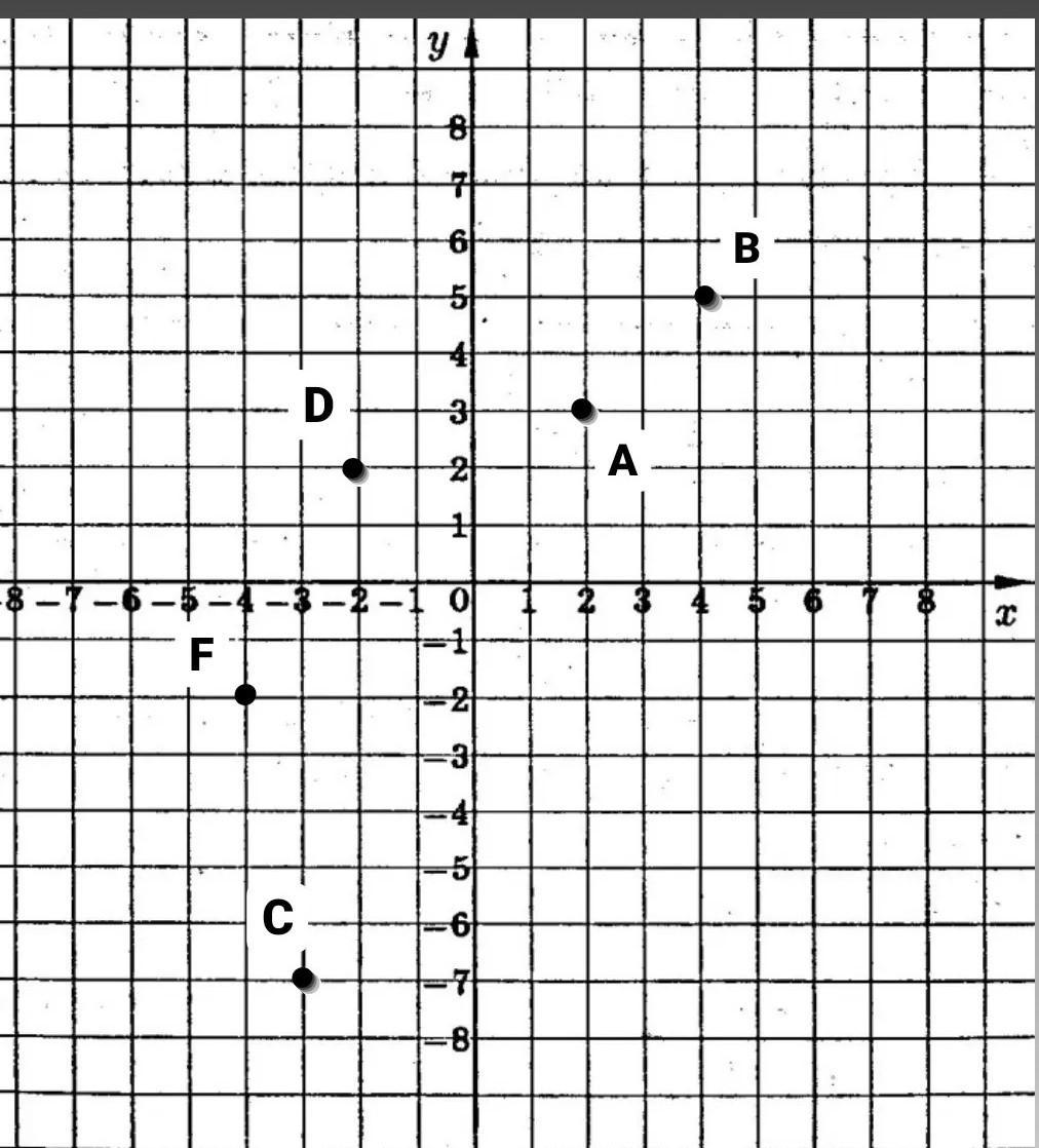 на координатній площині позначие точки A (2; 3), B (4; 5) , C (-3; 7), D (-2; 2), F (-4; -2)