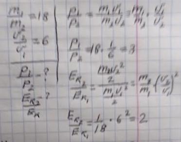 p₁/p₂=m₁v₁/(m₂v₂)=(18m₂*v₂/6) /(m₂v₂)=3