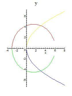 { y = -4.243, x = 3. } , { y = 4.243, x = 3. }