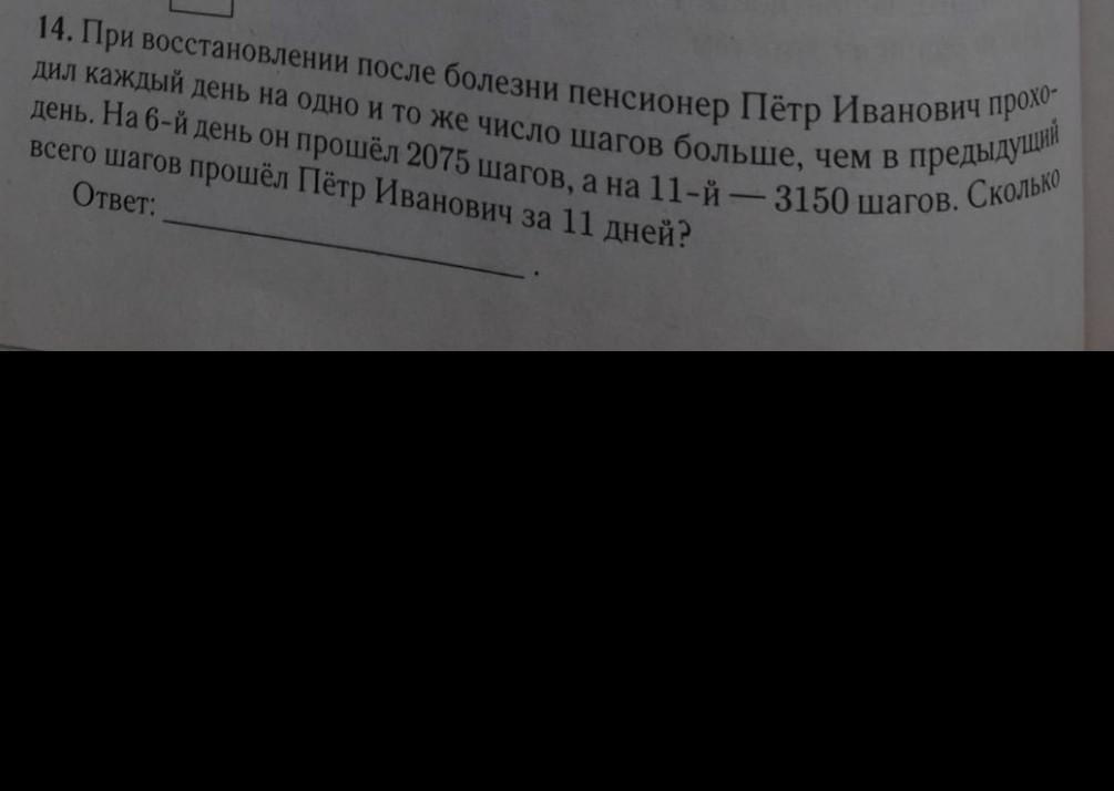 Так как Пётр Иванович проходит каждый день на одно и то же число шагов больше, чем в предыдущий, то мы имеем арифметическую прогрессию из числа шагов.