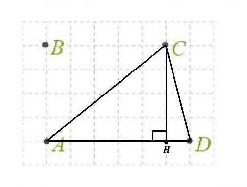 ΔACD , проведём там высоту СН , она равна длине 4 отрезков , основание АD = 6 отрезкам . Площадь такого треугольника равна