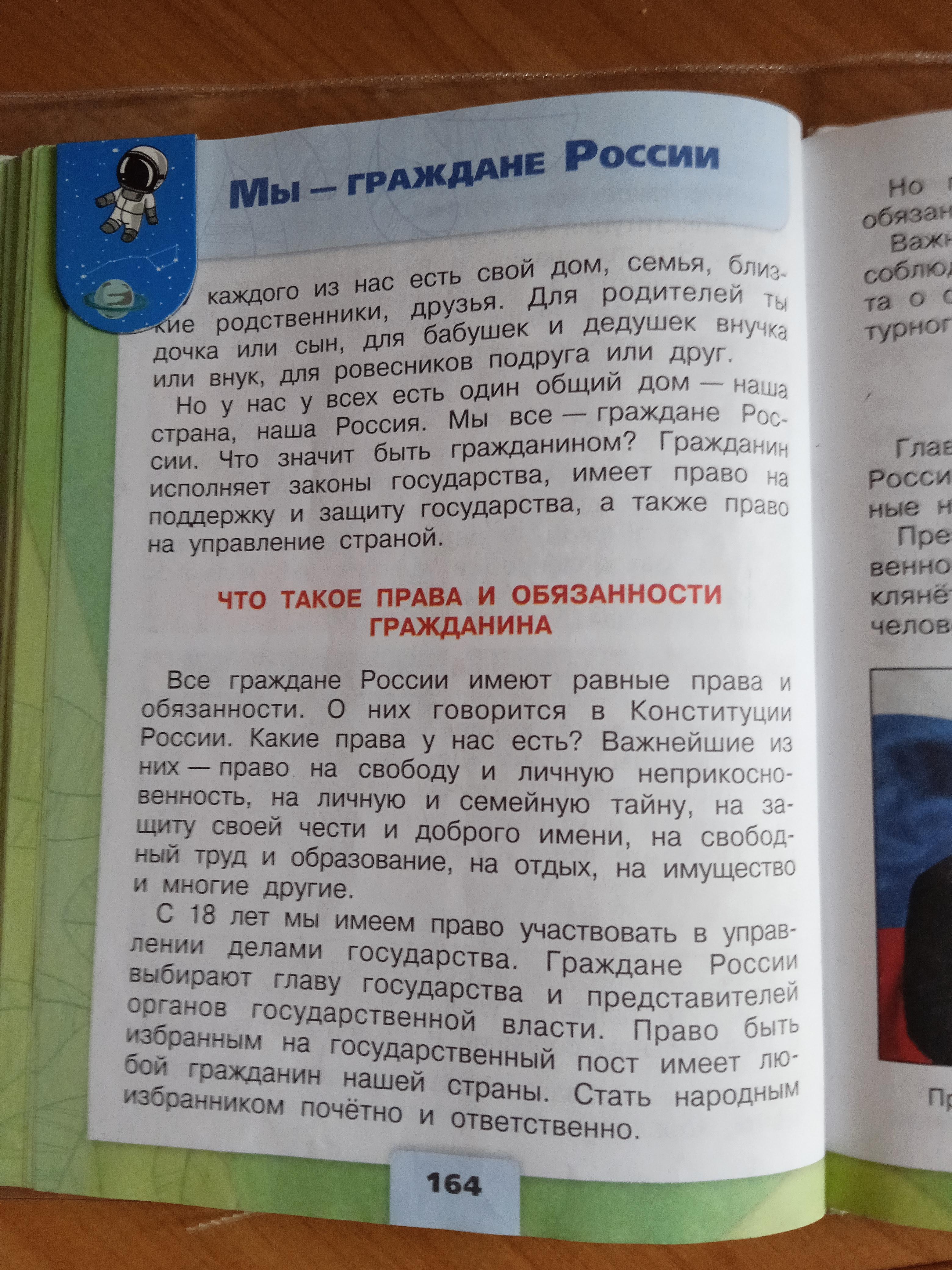 Окружающий мир 4 класс учебник стр 164-167 Мы-граждане России пересказ кратко содержание Помогите срочно!!!!!!