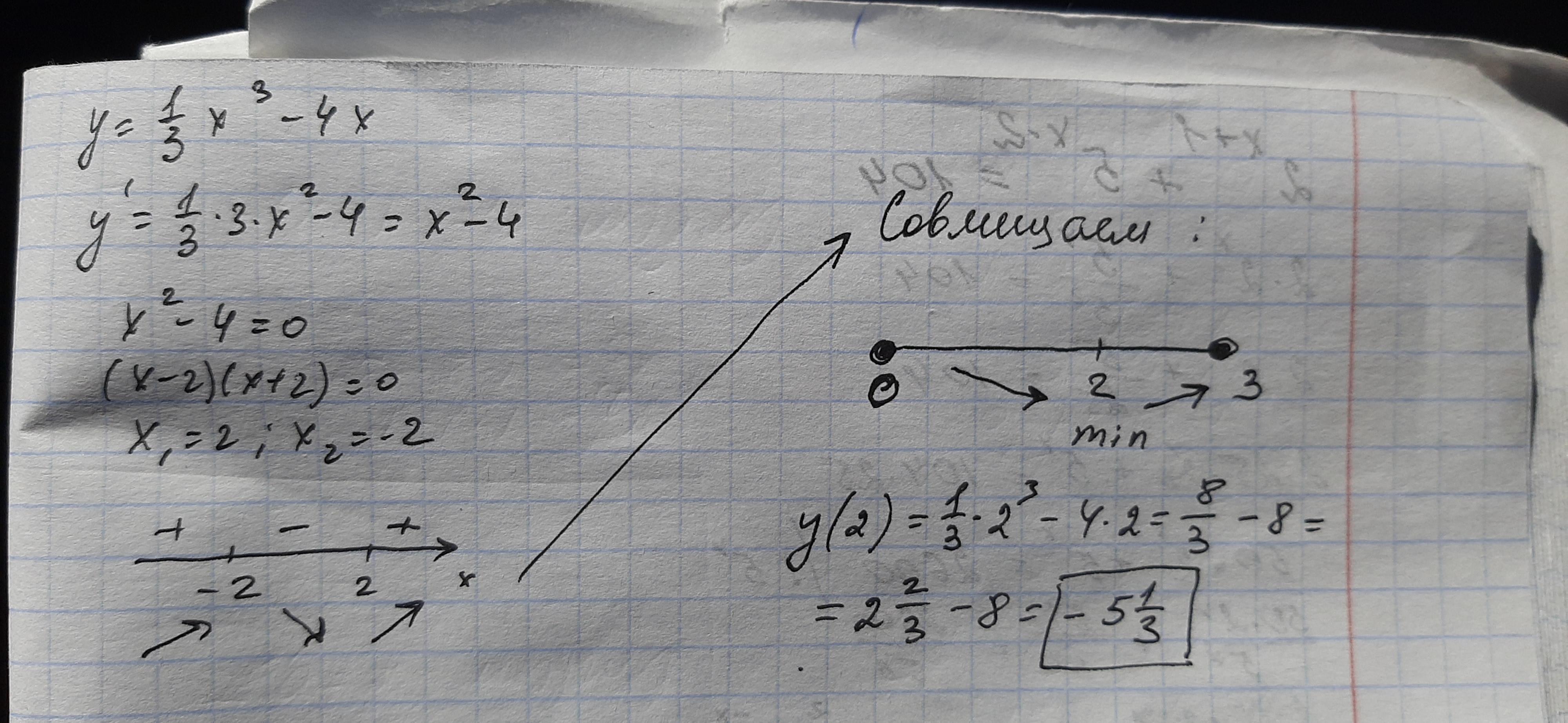 Знайдіть найменше значення функції y=1/3 x^3 -4x на проміжку [0;3]
