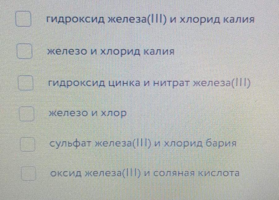Из предложенного перечня выберите все реакции, в которых образуется хлорид железа(III) и протекание которых возможно.