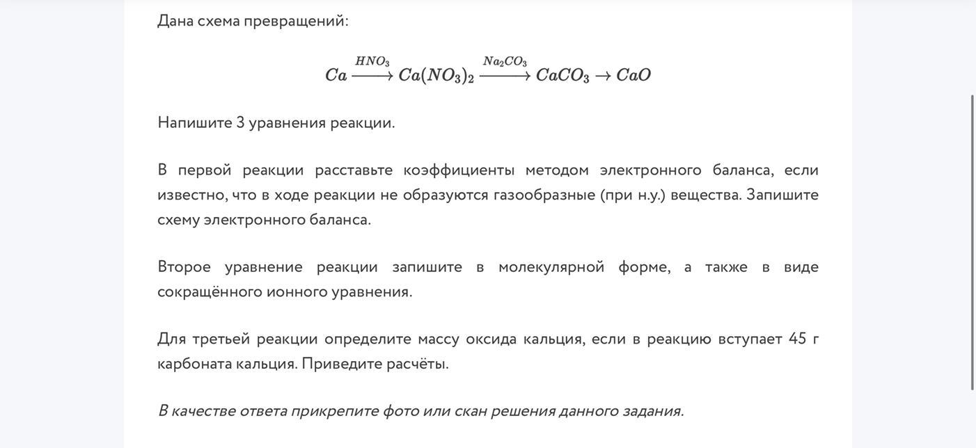Для третьей реакции определите массу оксида кальция, если в реакцию вступает 45 г