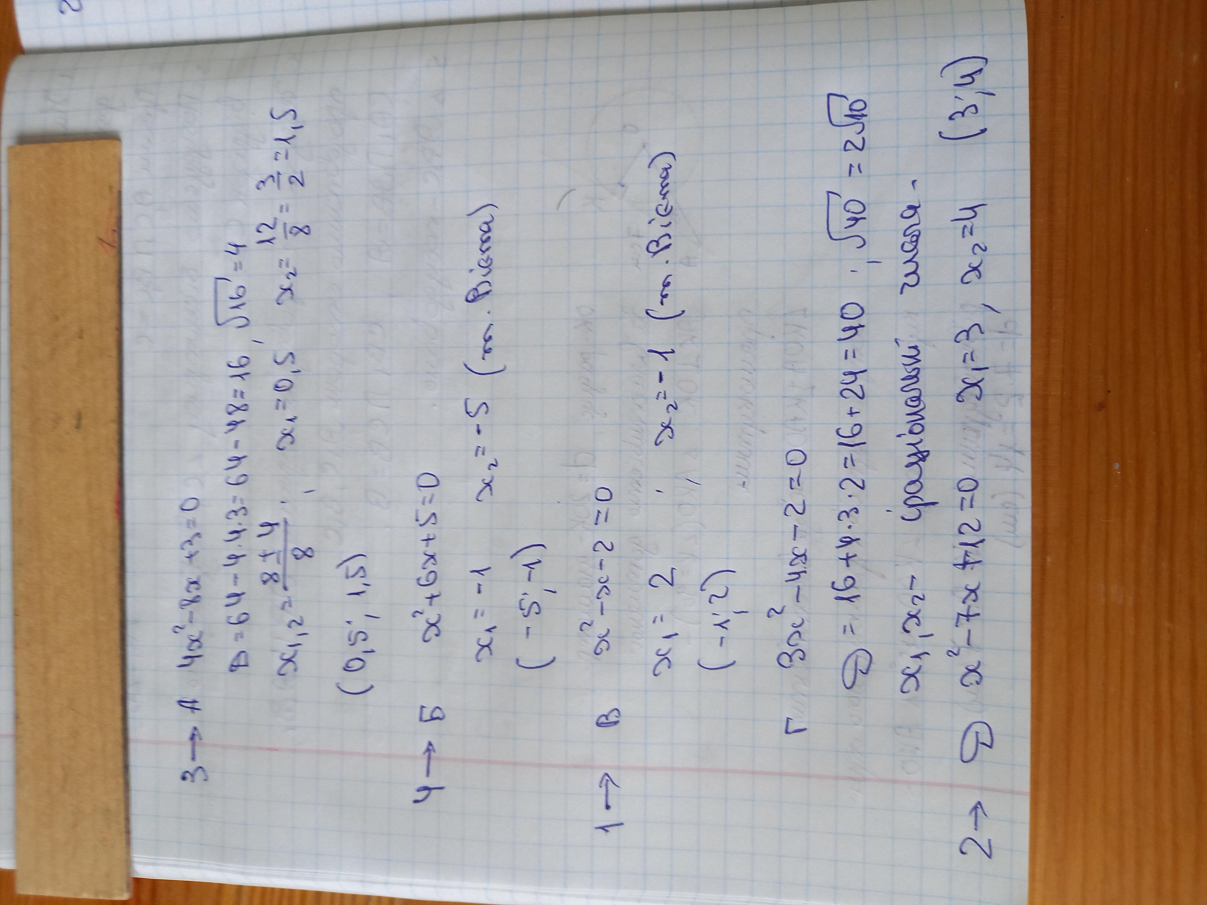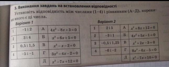 установіть відповідність між числами (1-4) і рівнянням (А-Д) коренями якого є ці числа