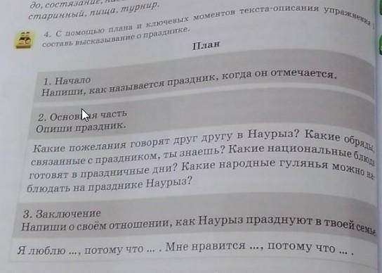 с помощью плана и ключевых моментов текста описания упражнения 1 составь высказывания о празднике