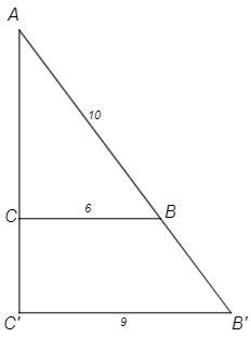 Побудуйте образ прямокутного трикутника АВС при гомотетії з центром в точці А і коефіцієнтом k=3/2. Знайдіть площу образа – трикутника АВ’С’, якщо гіпотенуза АВ=10 см, а катет ВС=6 см.