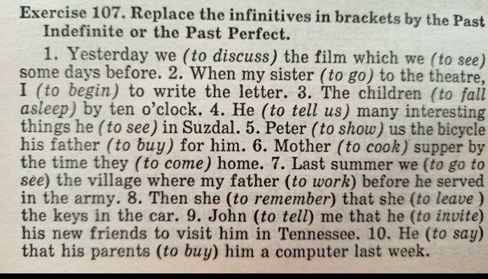 1. discussed 2. saw 3. went 4. started 5. fell 6. told us 7. saw 8. showed 9. bought 10. cooked 11. came 12. went to see 13. worked 14. remembered 15. left 16. told 17. invited 18. said 19. bought