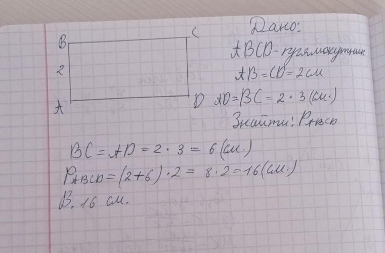 Знайди периметр прямокутника , якщо ширина дорівнює 2 см , а довжина утричі більша. (записуємо як задачу і креслимо прямокутник)