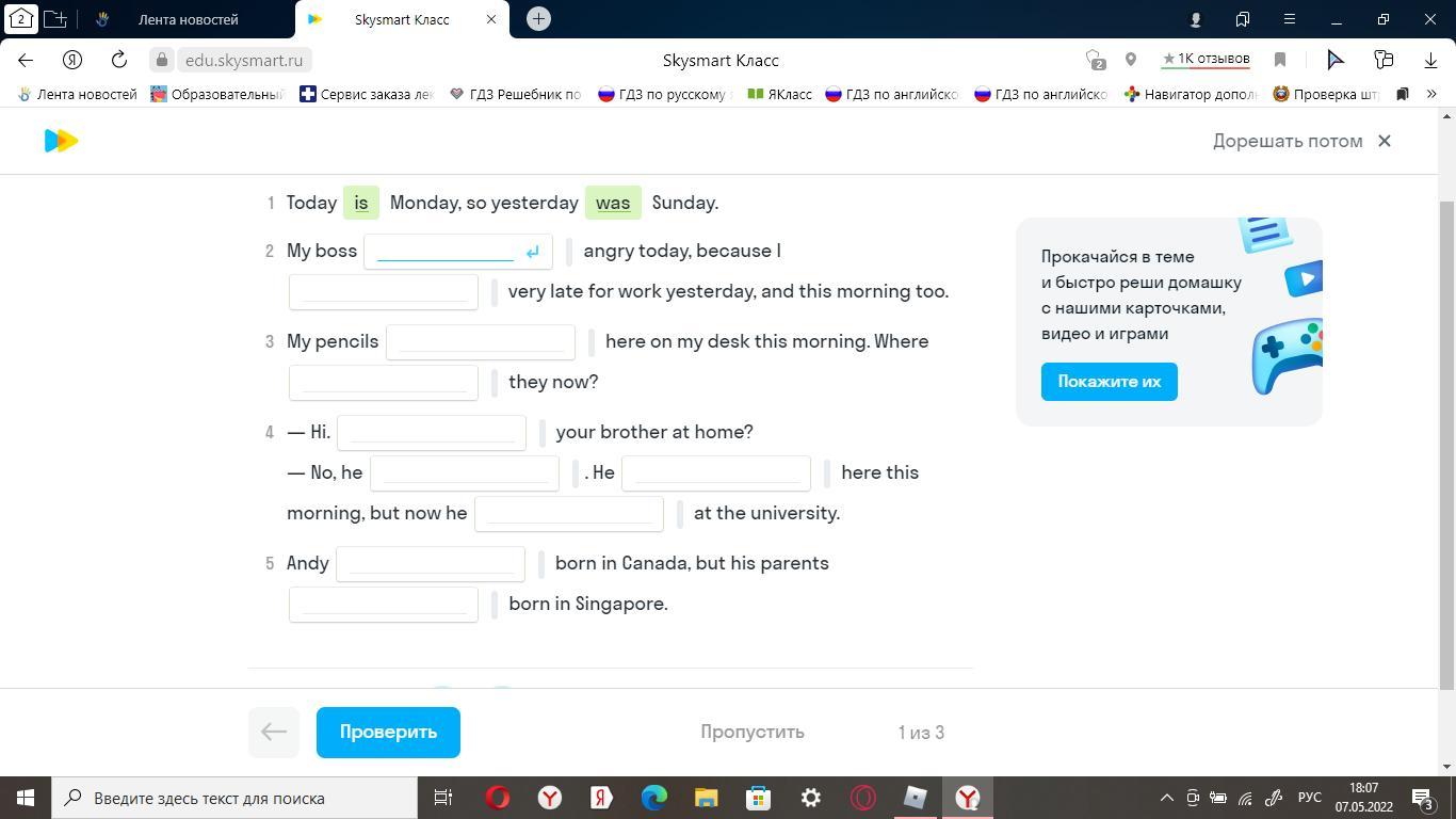4. Hi. Is your brother at home? No, he isn't. He was here this morning, but now he is at university.