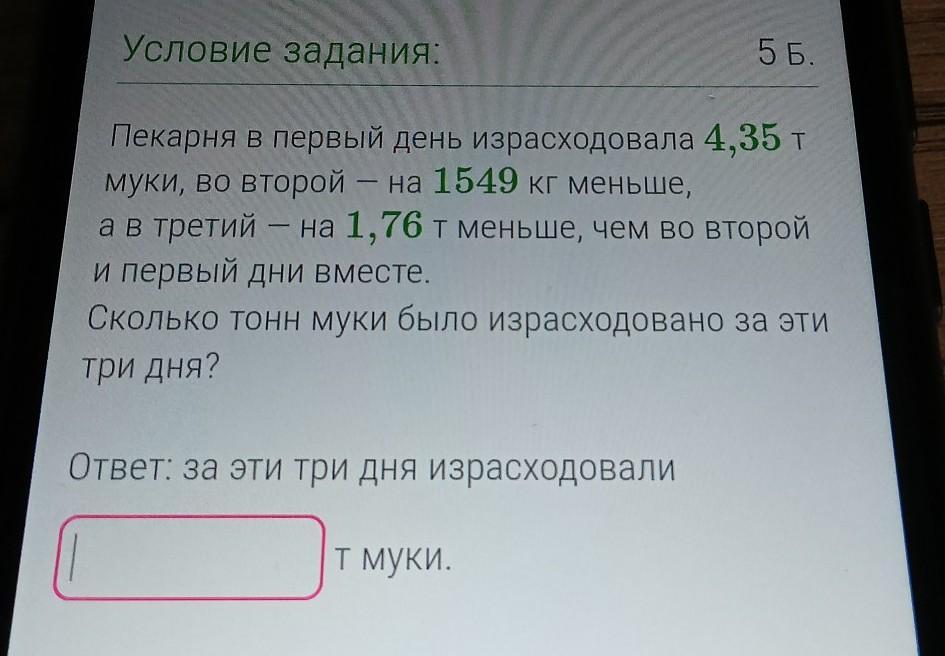 В третий день 4350 кг+2801 кгкг=7151 кг . 7151 кг-1760кг=