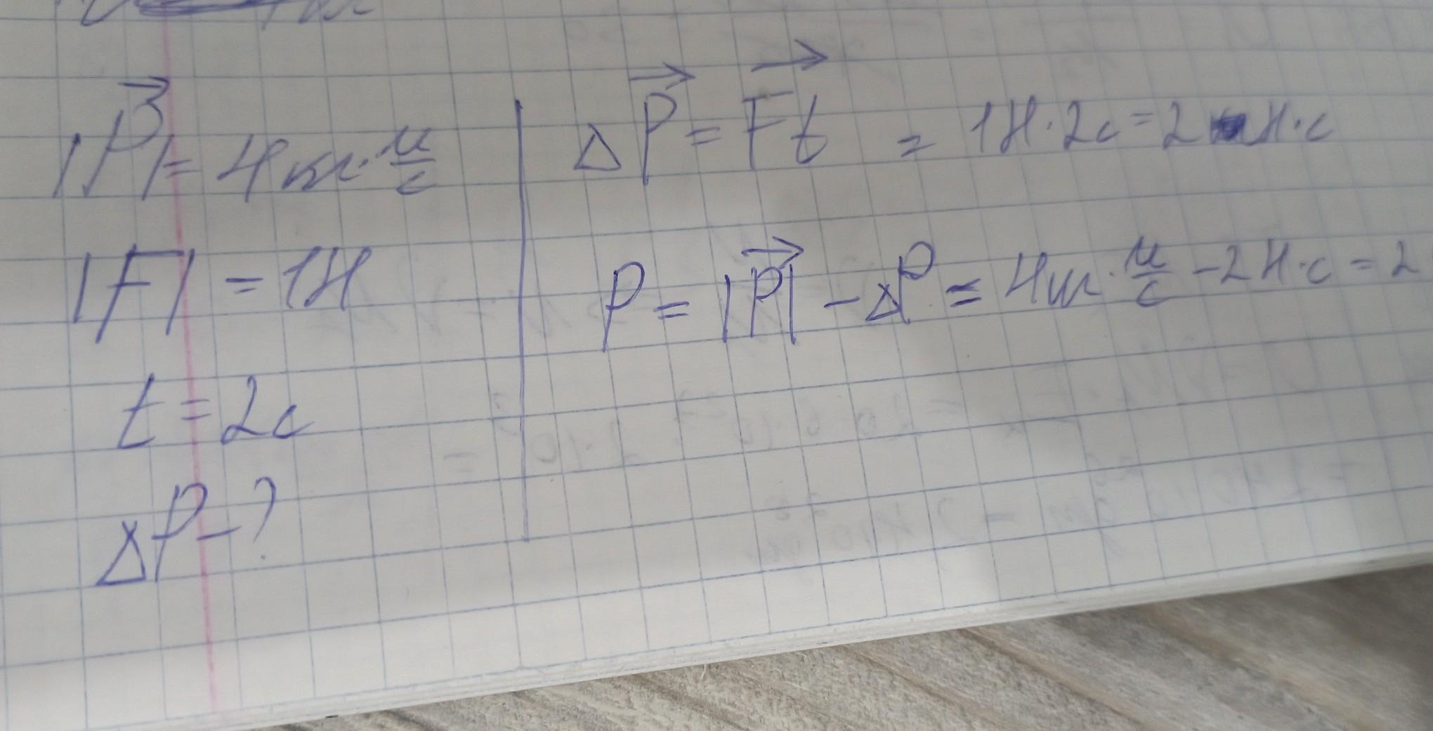 Тело движется равномерно и прямолинейно, при этом модуль импульса тела равен 4 кг·м/c. На тело в направлении, противоположном направлению его движения, начинает действовать постоянная сила, модуль которой равен 1 Н. Через 2 секунды действия этой силы модуль импульса тела будет равен.(Дано;Решение;Ответ.)