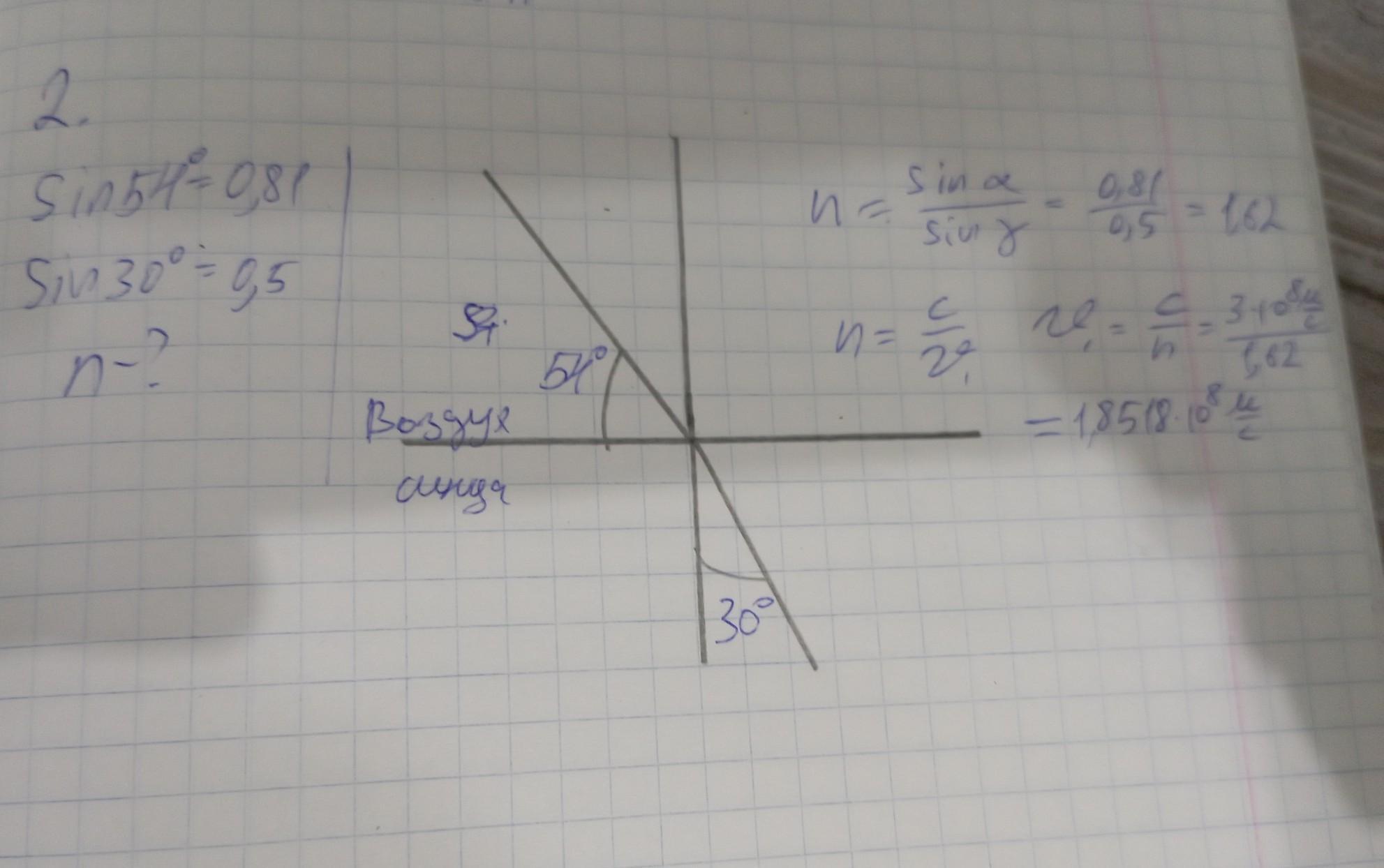 v2=3*10 ^8/1,62=1,85*10^8m/c.