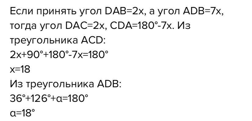 Так как сумма углов ΔADB равна 180°, получаем уравнение: