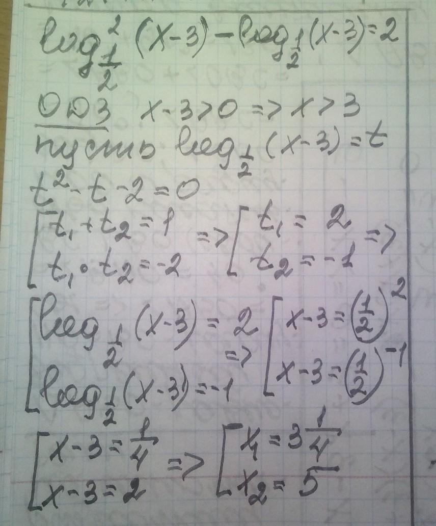 Log^2 1/2(x-3)+log1/2 (x-3)=2