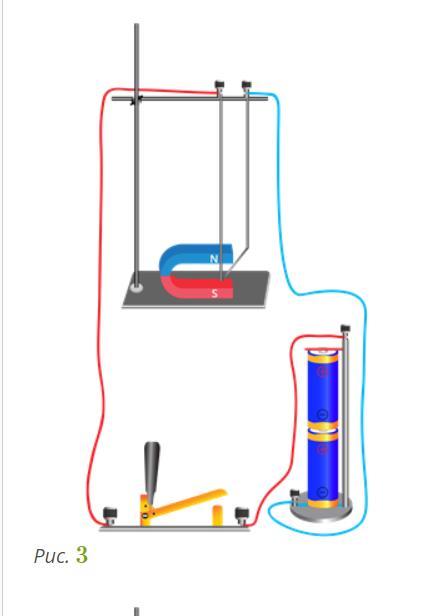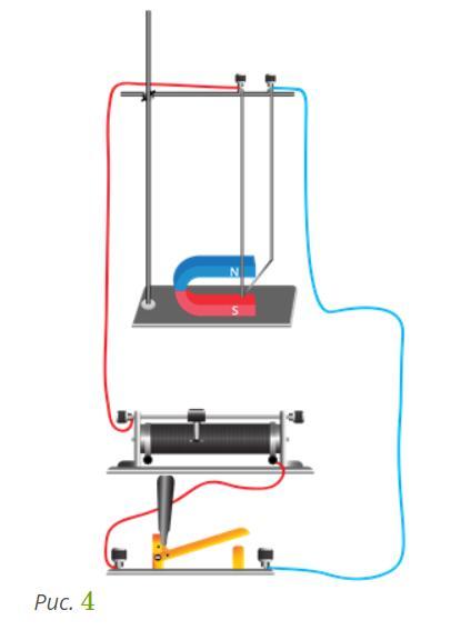 В каких из электрических цепей, показанных на рисунках 1-4, проводник при замыкании ключа придет в движение?