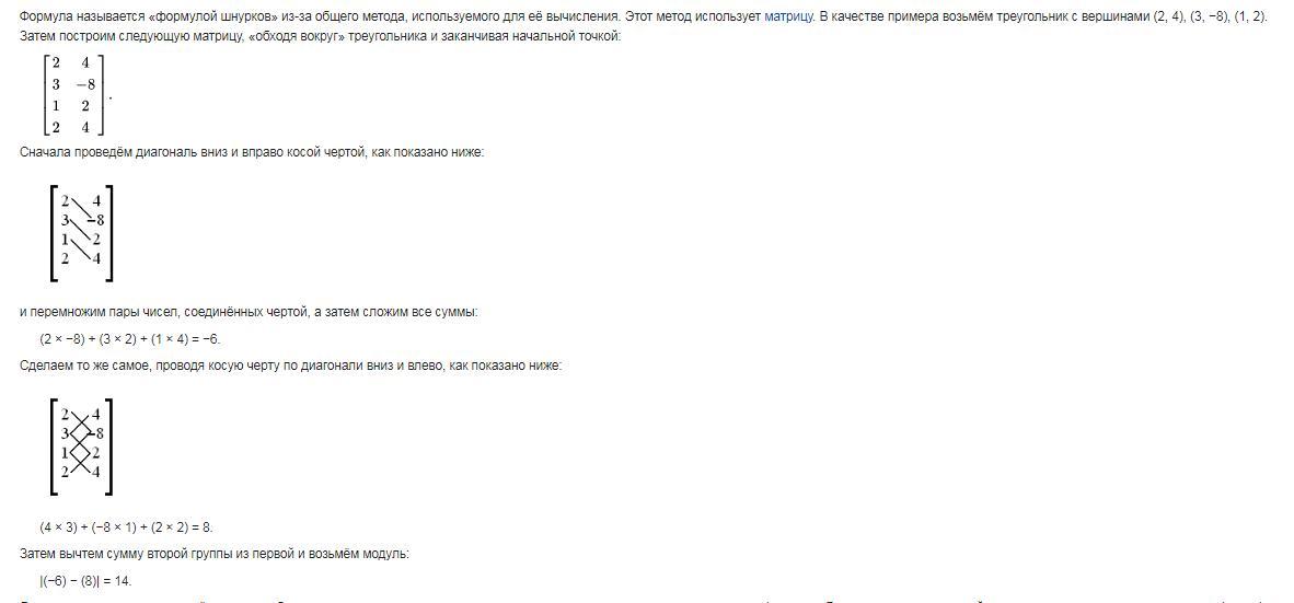 Найдем площадь с помощью формулы шнурков
