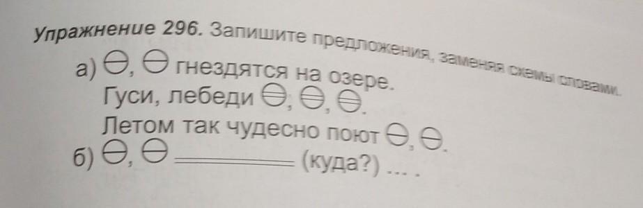Упражнение 296. Запишите предложения, заменяя схемы словами.