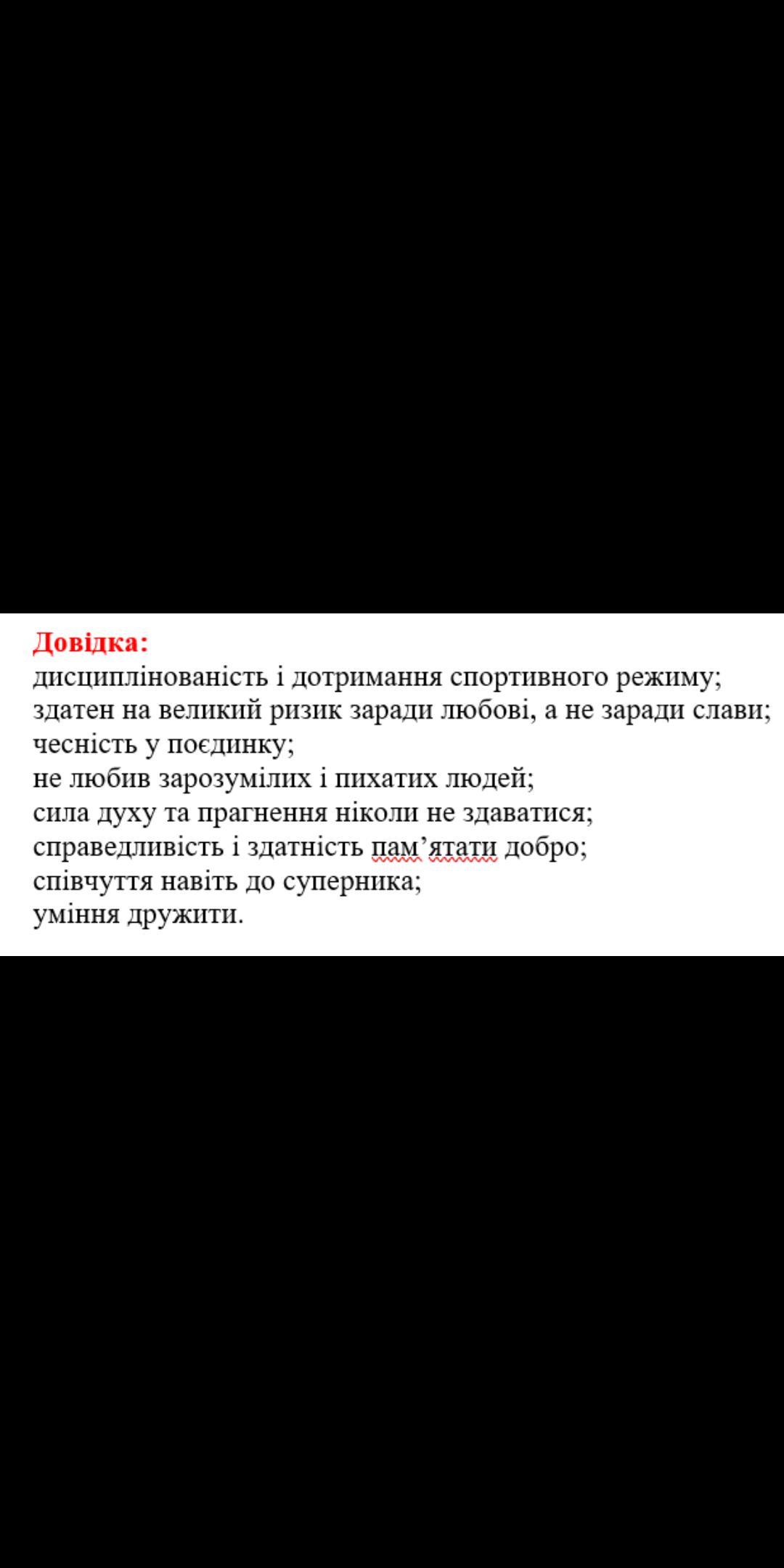 1. сила духу та прагнення ніколи не здаватися (отримавши сильний удар, все рівно піднявся і продовжив бій)