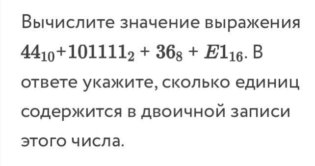 a = bin(44 + int('101111',2) + int('36',8) + int('E1',16))[2:]