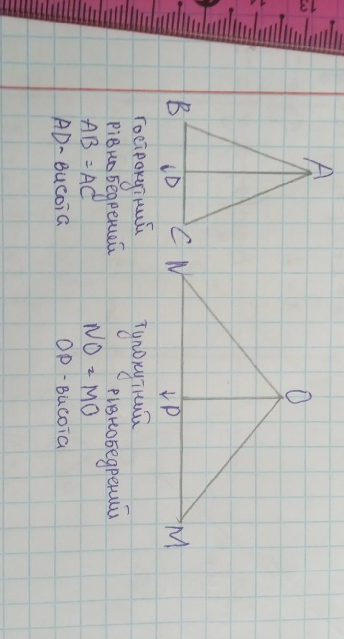Накресліть: 1) гострокутний трикутник; 2) тупокутний трикутник. Побудуйте всі висоти цього трикутника.