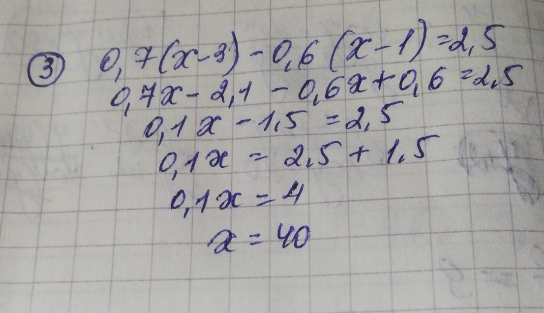 0,7(х-3)-0,6(х-1)=2,5