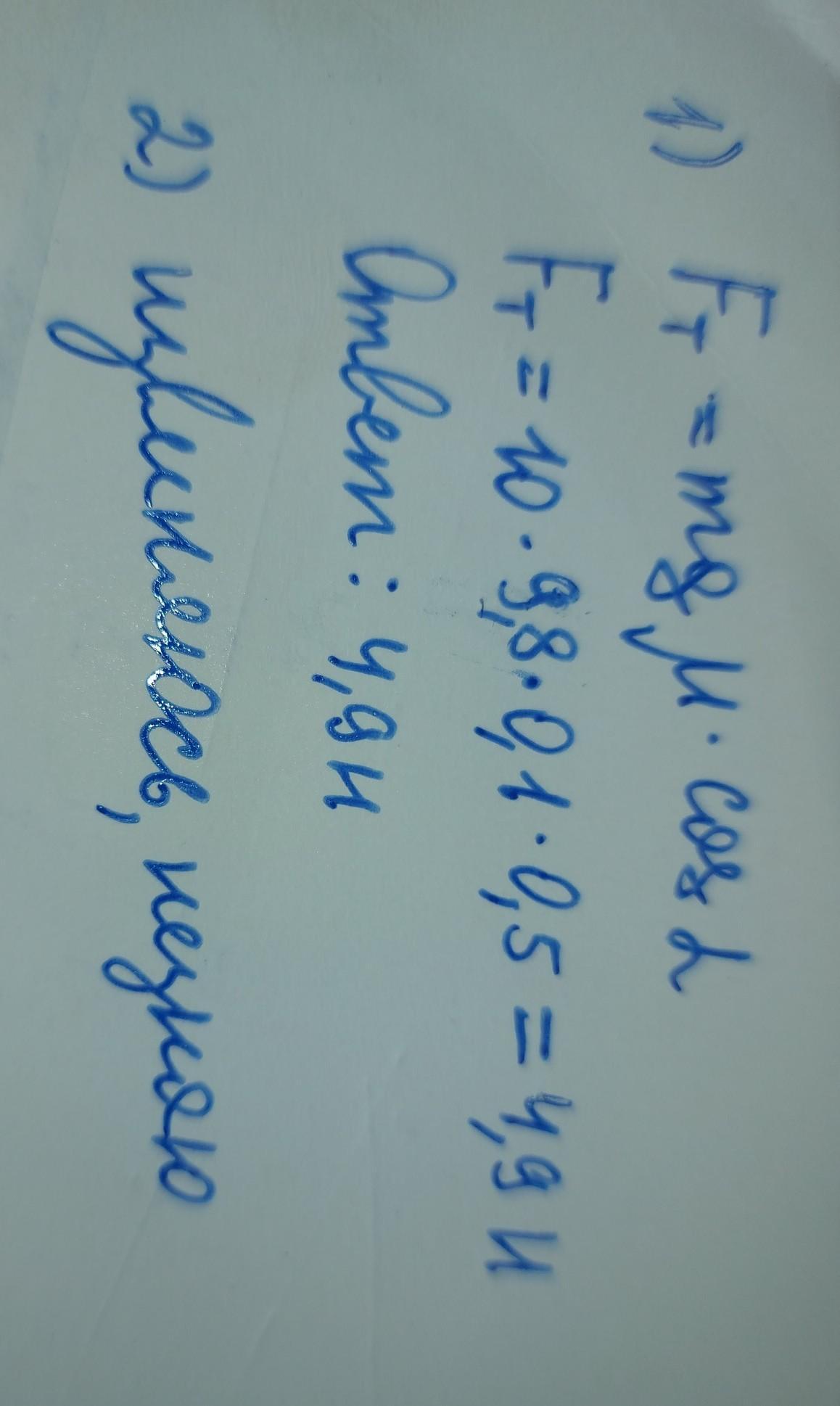 1.Тело массой 10 кг соскальзывает по наклонной плоскости, расположенной под углом 60° к горизонту. Коэффициент трения между телом и плоскостью равен 0.1. Определить силу трения.