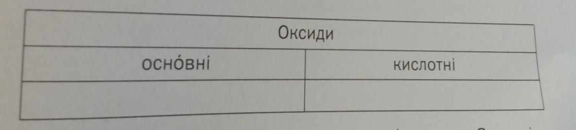 Розмістіть формули оксидів Li 2 O, Cu 2 O 7, Cl 2 O 7, Mg O, Si O 2 , Fe O, S O 2 ц у відповідні клітинки таблиці