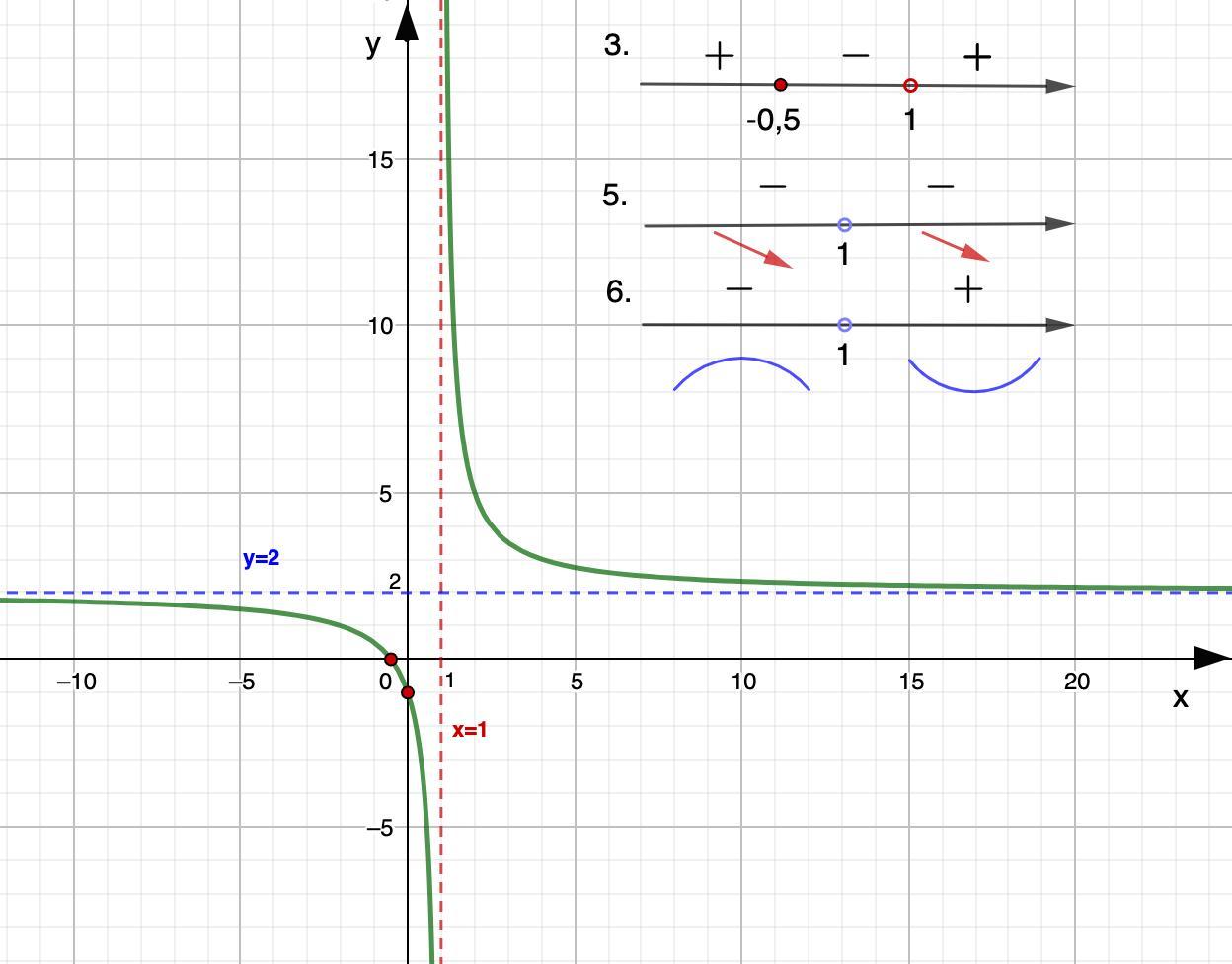 5. Функция убывает на промежутках: (-∞; 1); (1; +∞)