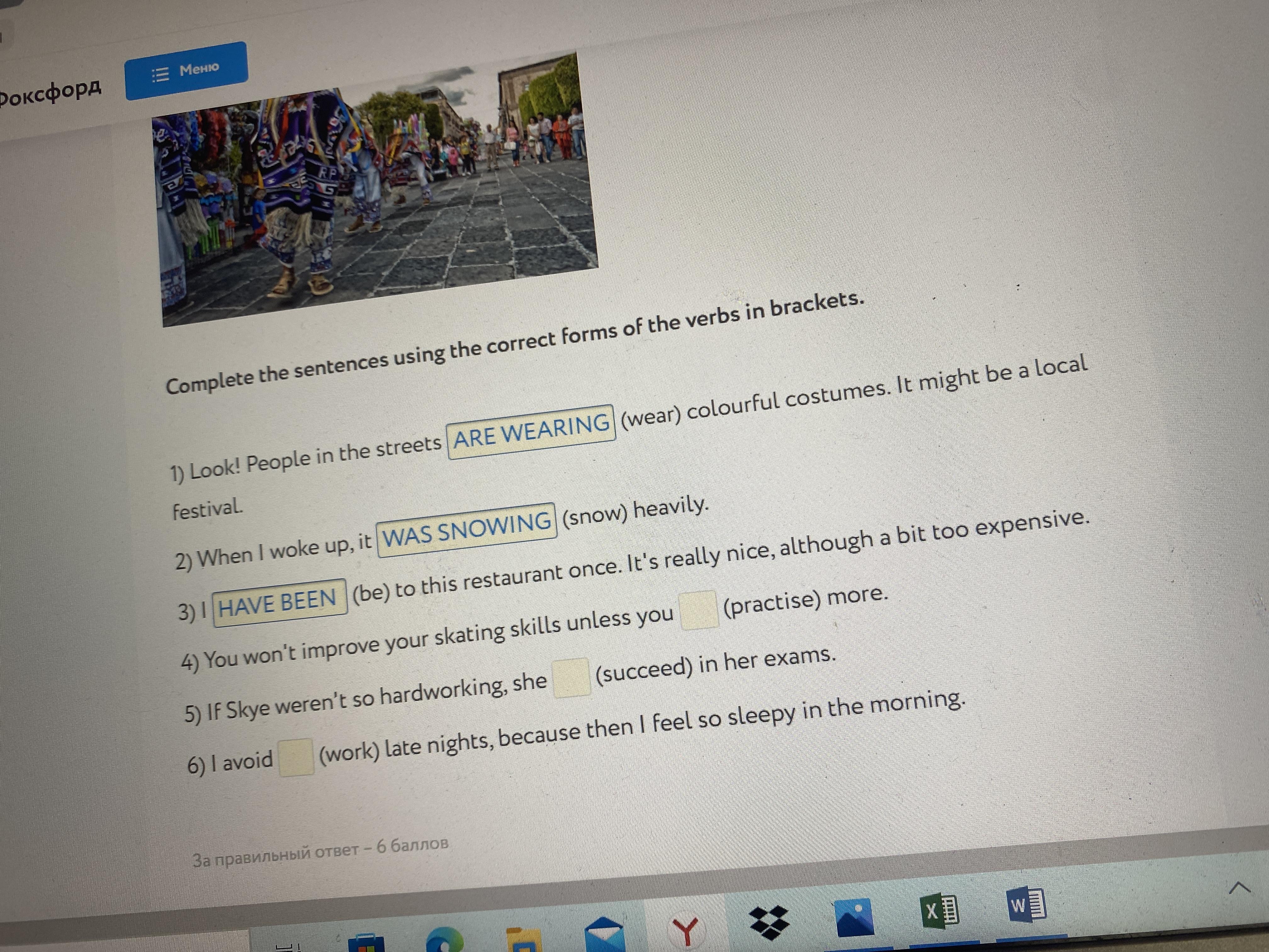 1) Look! People in the streets are wearing colourful costumes. It might be a local festival.