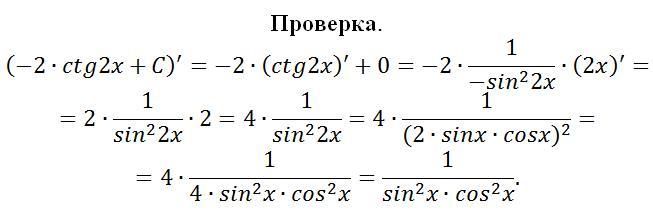 Перевод: Найти интеграл методом непосредственного интегрирования и выполнить проверку (найти производную от первоначальной).