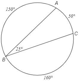 ∠ABC=◡AC/2 => ◡AC=25°*2=50°